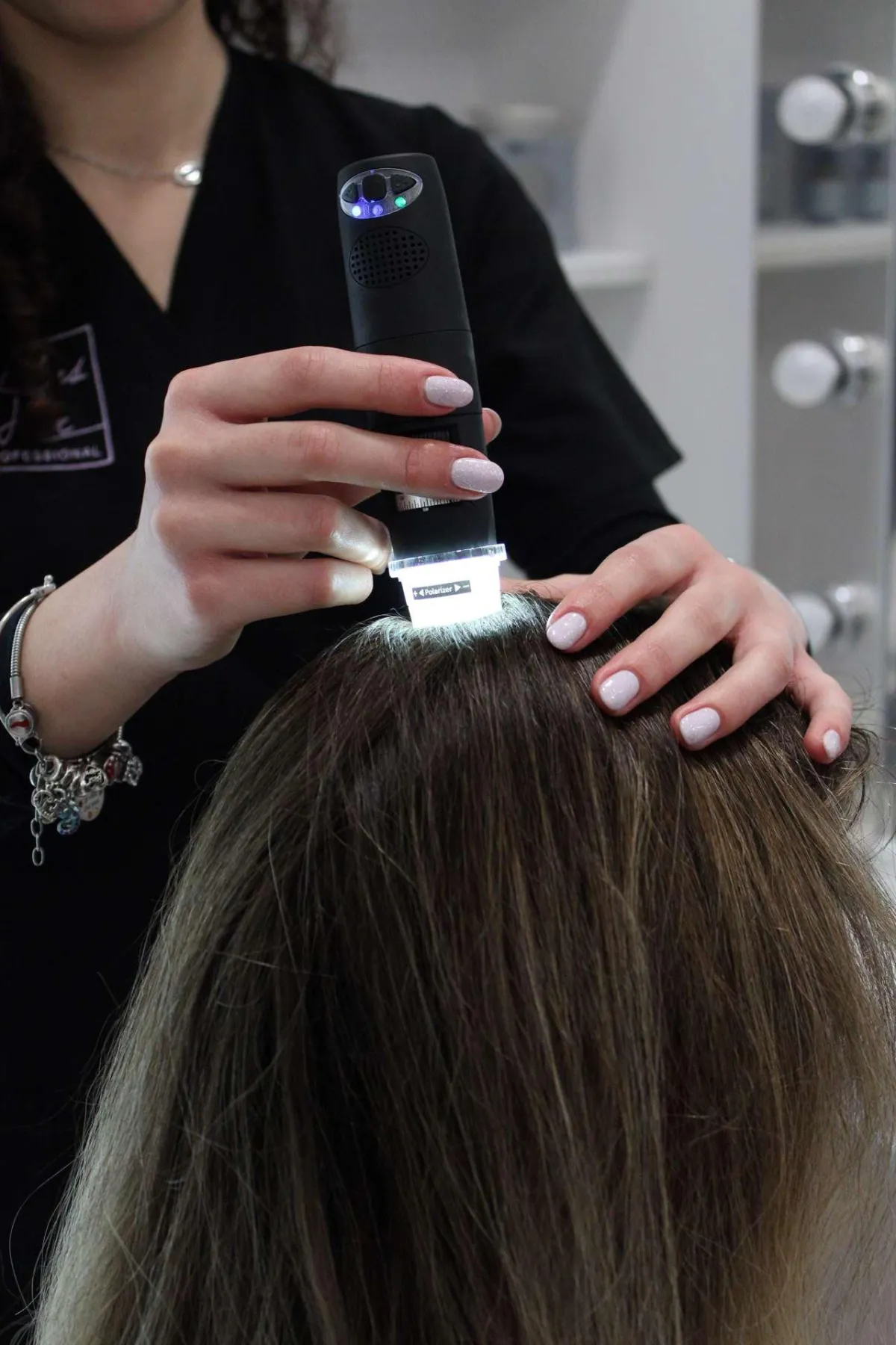 Viene analizzato in profondità lo stato della tua cute per rilevare con precisione disturbi come sebo in eccesso, forfora, infiammazioni o segnali di psoriasi. Un check accurato per capire la causa del tuo problema e come agire